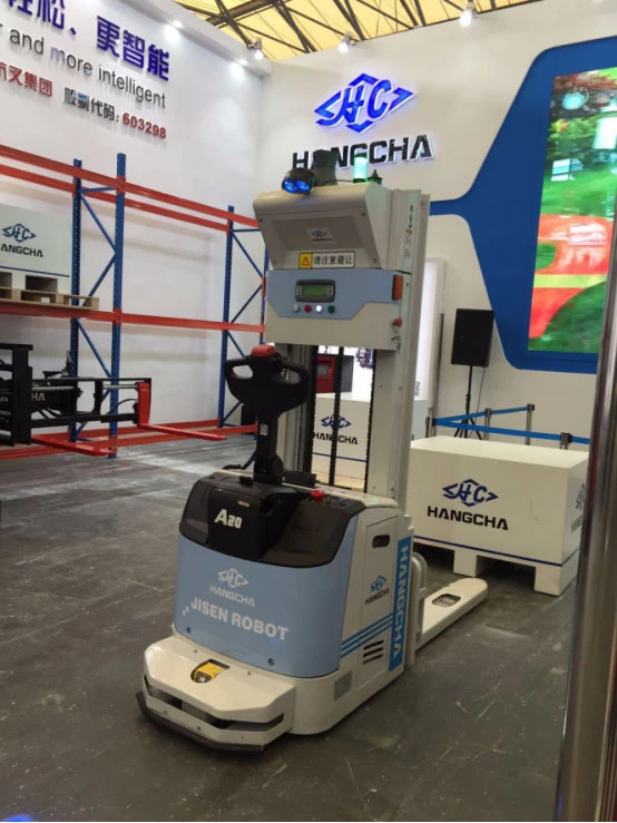 本次参加展会的是杭叉的两款“明星”产品,一款是窄巷道三向AGV,杭叉是全国首家研发成功窄巷道三向AGV的公司,该项目已成功在江苏赛拉弗光伏系统有限公司的成品仓库顺利运行,并通过了项目验收,窄巷道三向AGV设备可以在1.9米宽的巷道内完成三向旋转,进行9.5米高度货物的自动出入库作业,颠覆了传统高位货架的作业模式,集成了ERP、WMS、自动调度系统、输送线、WCS等软硬件,真正实现了仓库的无人化运作。另一款是:激光引导AGV堆垛车,具有无轨化运行、无线通讯、自动导航、自主充电、自主避障、故障自诊断等功能,据杭叉AGV工业车辆研发部门负责人的介绍,此激光引导AGV堆垛车还具有高精度及与WMS对接的优势,目前杭叉还在研发更大吨位的产品,以满足市场的需求。