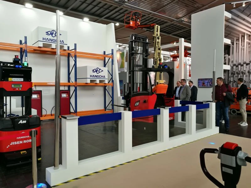 杭叉德国汉诺威物流展与当地知名搭建公司合作,设计元素与公司所需要表达的理念相同,展示了杭叉产品的魅力,令人印象深刻,产生了极好的视觉效果。AGV区与叉车产品区,讨论区和会议室的划分明确,合理的布局使得它进一步具备了优秀的“沟通”能力,聚集了许多行业内外的商家与客户。等离子电视,音响设备的应用更使得现场活动多元化,达到了我们所希望的目的和效果。