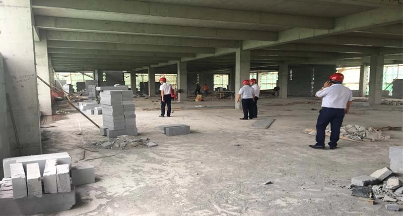 杭叉集团山东大区领导在中南高科人员的陪同下参观了3600平的4S店的施工现场