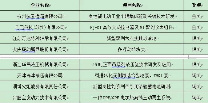 参与本届创新奖评选活动的企业共20家,申报项目为25项,包括关键零部件创新、智能化产品、互联网应用、新能源等新技术。参评企业代表按照抽签顺序依次对申报项目进行详细介绍,重点针对产品技术方向、产品创新性、行业代表性、产品成效性、市场发展潜力等方面进行阐述。12位评委针对参评项目进行现场提问和打分。经专家评委组打分和讨论,最终确定获奖名单如下: