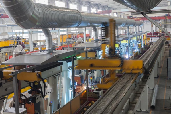 杭叉门架大范围采用焊接机器人流水线作业,每个焊接点位设置除尘系统统一收集焊接烟尘。