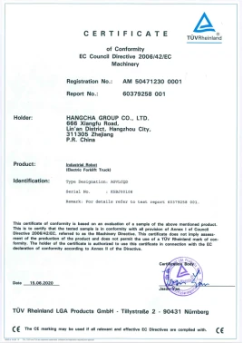 从技术层面看,工业叉车已从人工操控的机械产品向电子信息系统控制的智能产品转变,对工业叉车的智能性和安全性提出了更高的要求。在认证机构莱茵的大力支持和指导下,杭叉集团协同三方技术力量,经过4个月密切配合,严格按照技术评审、关键零部件选型、样机初检、技术整改、现场试验、资料整改要求,逐项攻克基础性能、功能安全、电气安全、风险评估中的技术难点,最终于2020年6月获得了智能叉车领域无人驾驶工业车辆CE证书。