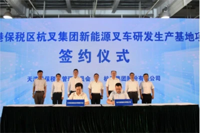 天津港保税区作为国家级自贸区,下辖空港区、临港区、海港区三个区域,分别承担航空物流、先进装备制造业、国际化贸易等功能,在政策、功能、服务上具有独特优势。2020年5月18日,天津港保税区出台了扶持氢能产业发展的若干政策,为氢燃料电池叉车的推广应用提供了有力的保障,也使得天津港保税区的区位优势、资源优势及政策优势更加明显。2020年8月21日,杭叉集团与天津港保税区在临港智能装备产业园正式签约。新成立的杭叉集团(天津)新能源叉车有限公司,将通过强化与集团公司的研发协同、生产协同及服务协同,实现高质量发展,携手新氢动力科技、临港新兴投资等保税区上下游企业,助力天津港保税区做强、做大氢能产业链。