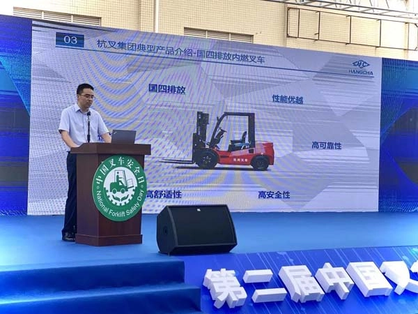杭叉集团技术总监陈伟强对大会作了致辞。陈总监围绕“中国叉车安全日”活动,讲了杭叉在安全方面开展的工作以及杭叉在未来的发展方向和目标,并祝本届活动圆满成功。