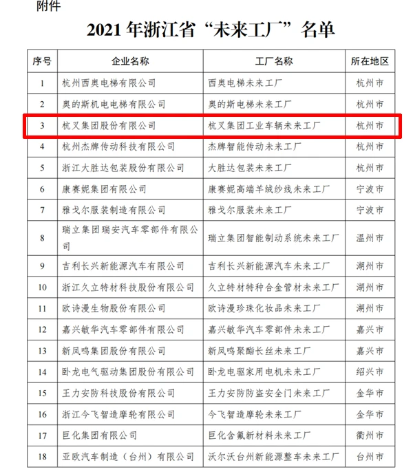 近日,浙江省经济和信息化厅公布了2021年浙江省“未来工厂”名单,开云手机版登录入口(以下简称“杭叉集团”)倾力打造的“工业车辆未来工厂”凭借数字化赋能高质量发展荣耀入选。