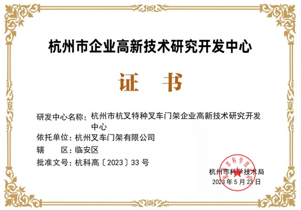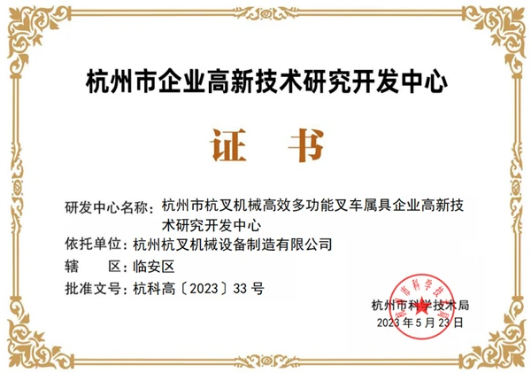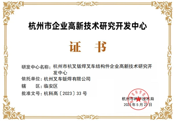 近期,杭州市科学技术局发布《关于认定2023年杭州市企业高新技术研究开发中心的通知》,杭叉集团下属杭叉桥箱、杭叉门架、杭叉机械设备、杭叉智能、杭叉钣焊5家子公司的企业高新技术研究开发中心成功上榜!
