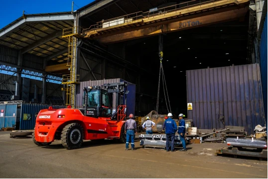 杭叉作为领先的叉车制造商,产品线覆盖了各种场景和行业,提供0.75-48吨的全系列锂电专用叉车、内燃叉车、集装箱正面吊以及空箱堆高机等港口机械设备,能够满足客户在不同行业和场景中的多样化需求。杭叉X系列大吨位内燃叉车以其高效、耐用和可靠的特性,为秘鲁钢铁厂提供了全面的物料搬运解决方案和支持。在复杂的工作环境下,展现出卓越的适应能力和稳定性,为钢铁厂的生产经营注入了强大的动力和保障。